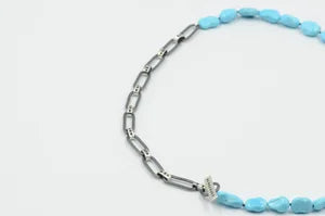 Turquoise Pebble Chain with Black Spinel Necklace