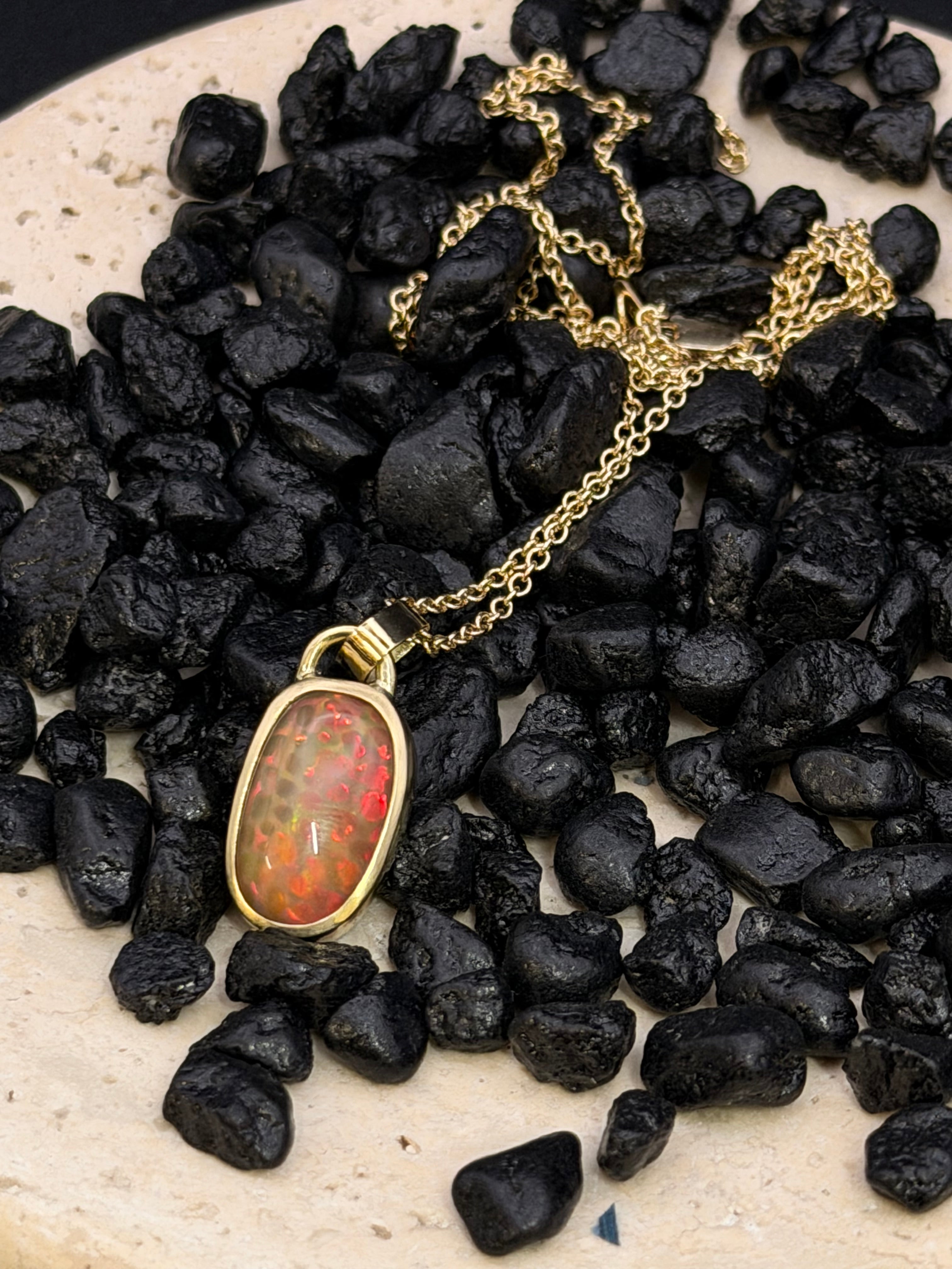 Ethiopian Opal and 18K Gold Beaded Necklace