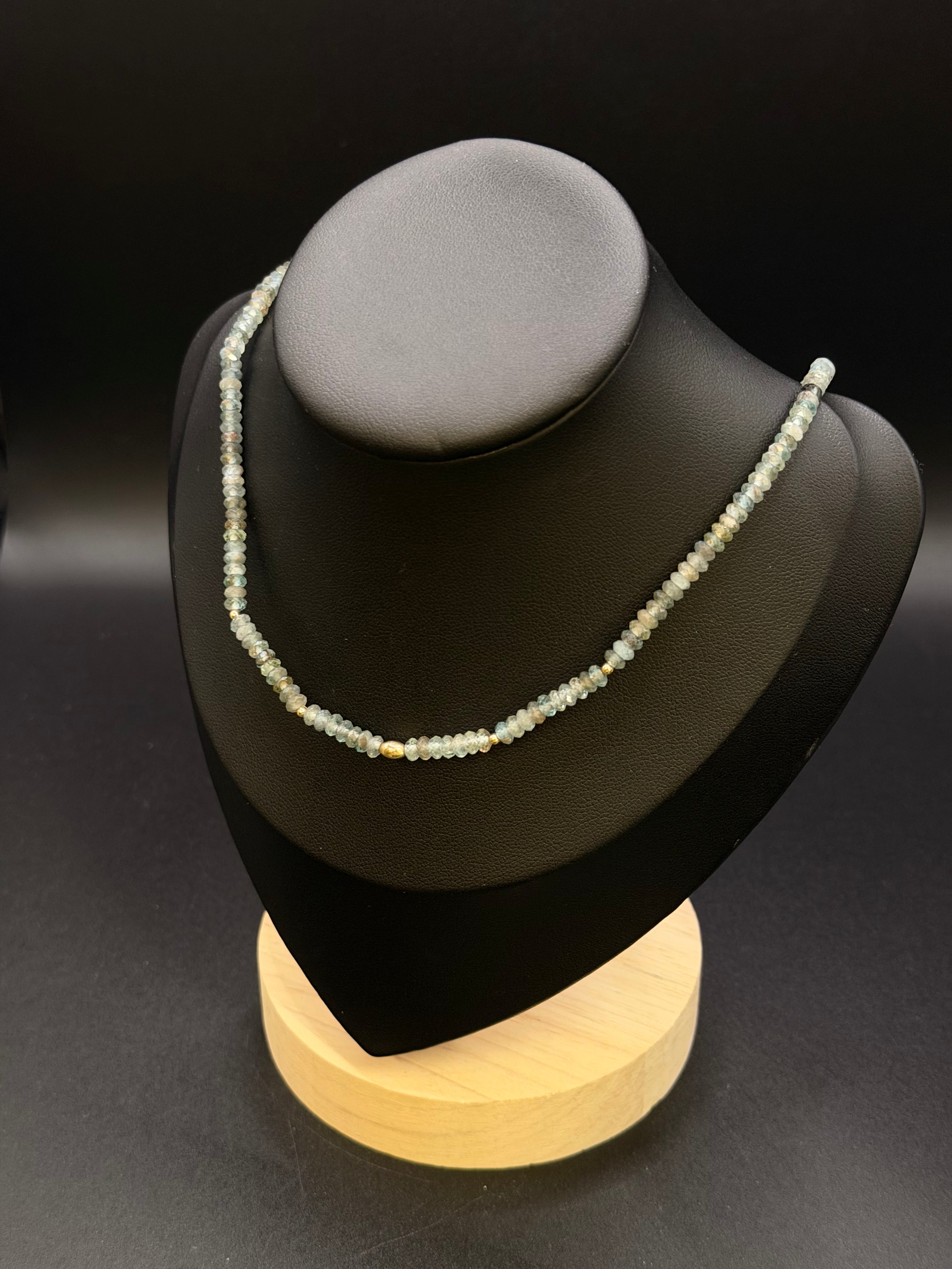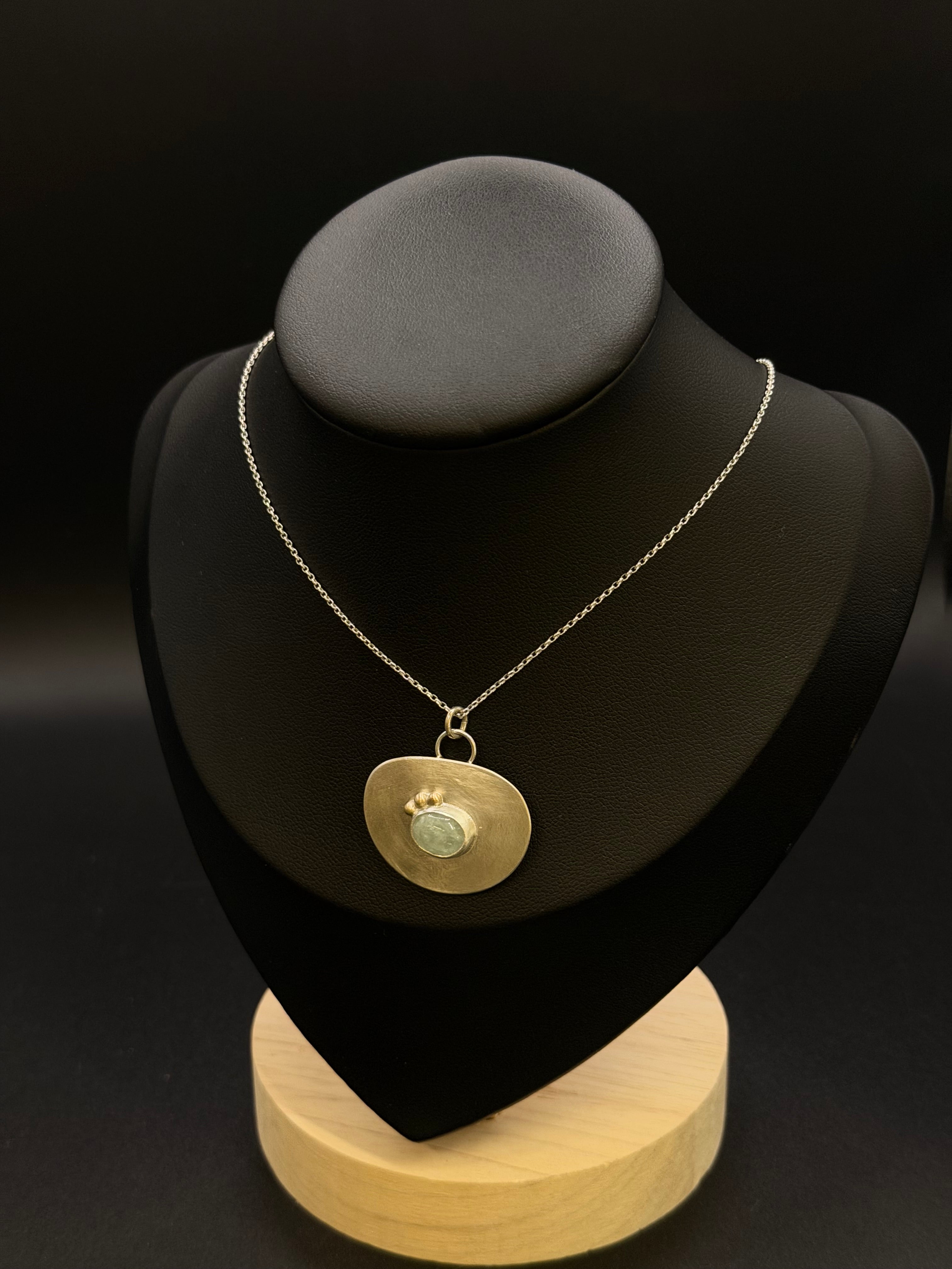 Aqua Marine and 14K Gold on Sterling Silver Necklace